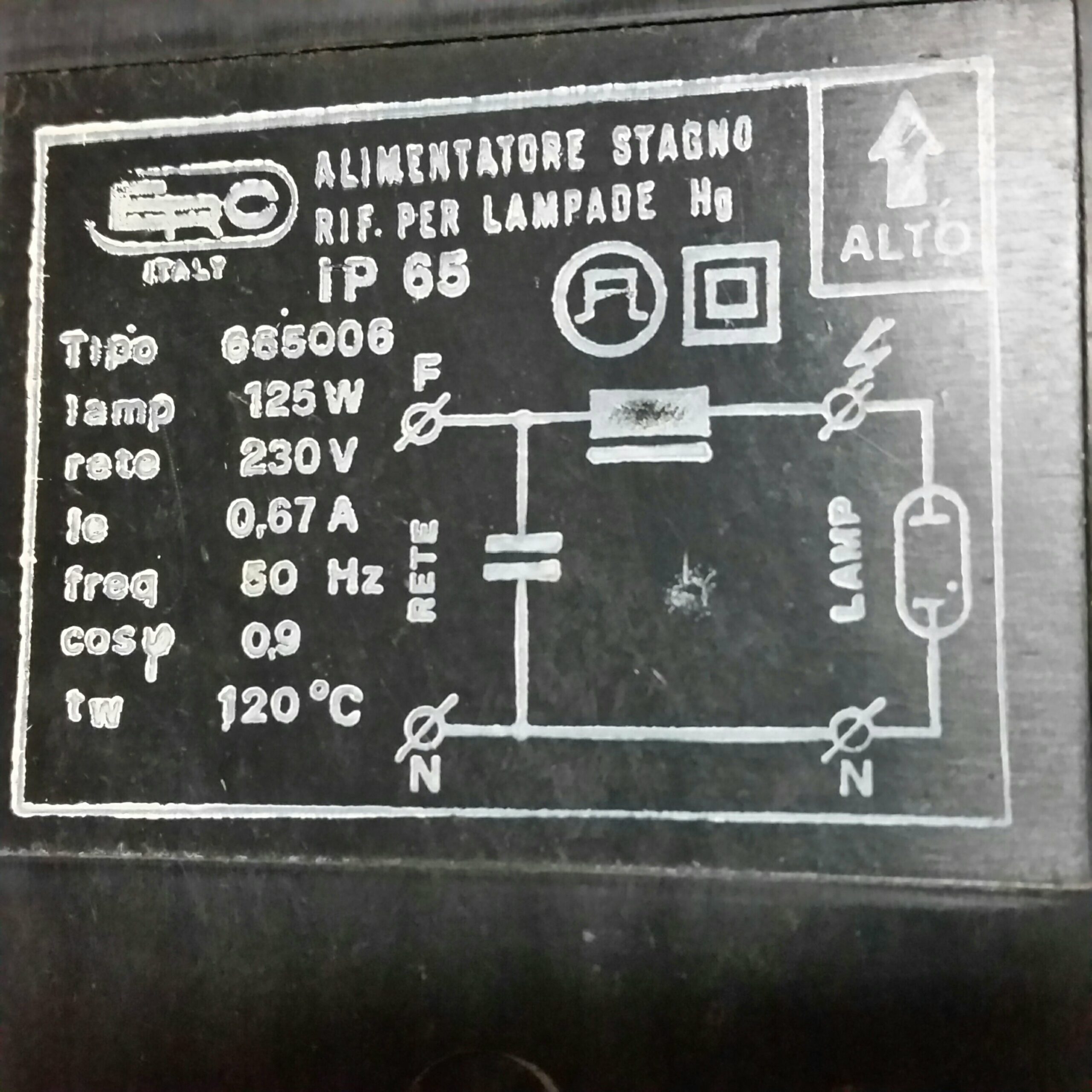 Alimentatore stagno per lampade a vapori di mercurio IP 65 ERC 665006